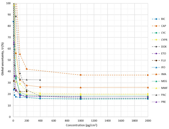 Appendix A. Estimation of the Global Uncertainty Associated with the Analytical Results