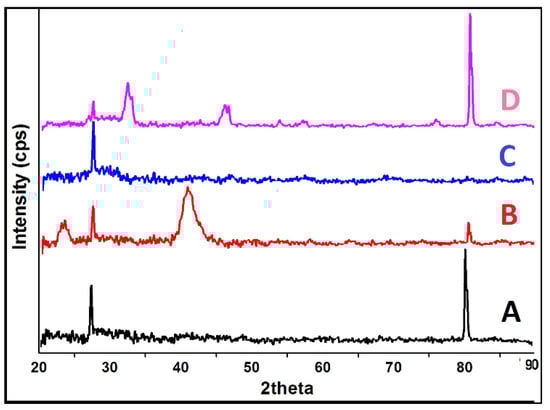XRD analysis of (A) Keratin, (B) PVA, (C) GS, and (D) 1:4 composite Scaffold.