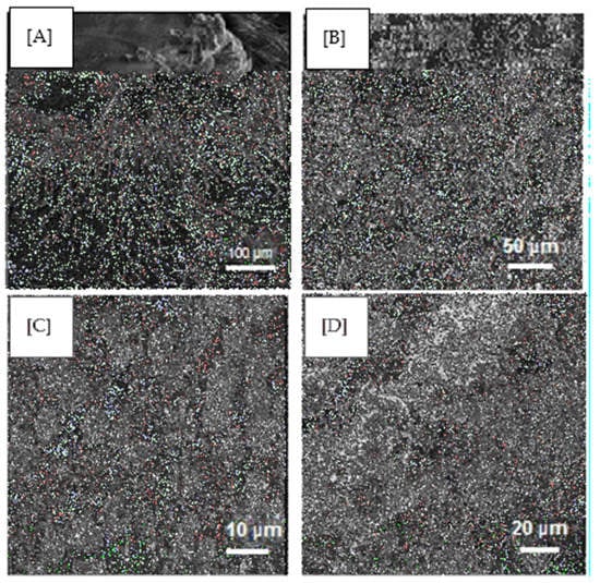 The morphological analysis of the composite scaffold was done using scanning electron microscopy (SEM). The scaffold was coated with gold using an Edwards E306 sputter coater. The stubs were introduced into the specimen chamber of a VEGA3 TESCAN scanning electron microscope. The stubs mounted on the stage could be tilted, rotated and moved to the desired position and orientation [44]. The scaffold was viewed under different magnifications in different sizes according to the nature of the fibers.