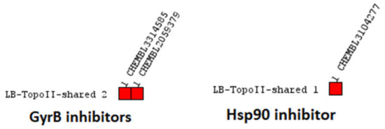 The following are available online at https://www.mdpi.com/article/10.3390/ph14080789/s1, Figure S1: Validation phase of (a) LB-GyrB-Model-5m; (b) LB-GyrB-Model-4; (c) LB-GyrB-Model-6 ligand-based pharmacophore models; Figure S2: Validation phase of (a) LB-Hsp90-Model-3, (b) LB-Hsp90-Model-4, (c) LB-Hsp90-Model-5, and (d) LB-Hsp90-Model-6 Hsp90 ligand-based pharmacophore models; Figure S3. Validation phase of (a) LB-TopoII-Model-1, (b) LB-TopoII-Model-2, (c) LB-TopoII-Model-3, and (d) LB-TopoII-Model-4 TopoII ligand-based pharmacophore models.