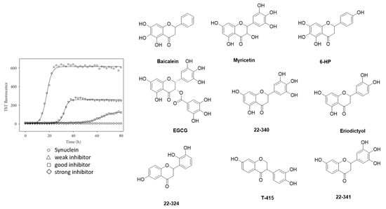 - Meng, X.; Munishkina, L.A.; Fink, A.L.; Uversky, V.N. Effects of Various Flavonoids on the α-Synuclein Fibrillation Process. Park. Dis. 2010, 2010, 650794. [Google Scholar] [CrossRef] [Green Version]