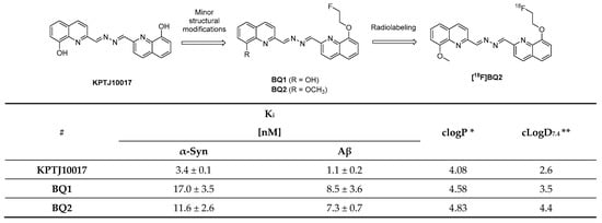 - Kaide, S.; Watanabe, H.; Shimizu, Y.; Iikuni, S.; Nakamoto, Y.; Hasegawa, M.; Itoh, K.; Ono, M. Identification and Evaluation of Bisquinoline Scaffold as a New Candidate for α-Synuclein-PET Imaging. ACS Chem. Neurosci. 2020, 11, 4254–4261. [Google Scholar] [CrossRef]