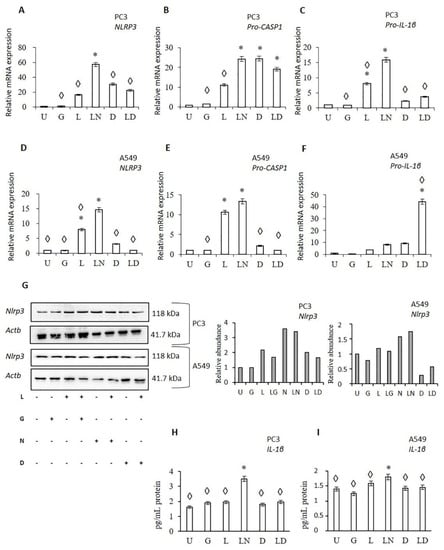 - Tezcan, G.; Garanina, E.E.; Alsaadi, M.; Gilazieva, Z.E.; Martinova, E.V.; Markelova, M.I.; Arkhipova, S.S.; Hamza, S.; McIntyre, A.; Rizvanov, A.A.; et al. Therapeutic Potential of Pharmacological Targeting NLRP3 Inflammasome Complex in Cancer. Front. Immunol. 2021, 11, 607881. [Google Scholar] [CrossRef]