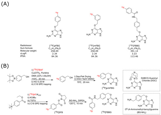 - Vaidyanathan, G.; Affleck, D.J.; Cavazos, C.M.; Johnson, S.P.; Shankar, S.; Friedman, H.S.; Colvin, M.O.; Zalutsky, M.R. Radiolabeled guanine derivatives for the in vivo mapping of O(6)-alkylguanine-DNA alkyltransferase: 6-(4-[(18)F]Fluoro-benzyloxy)-9H-purin-2-ylamine and 6-(3-[(131)I]Iodo-benzyloxy)-9H-purin-2-ylamine. Bioconjug. Chem. 2000, 11, 868–875. [Google Scholar] [CrossRef]
