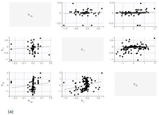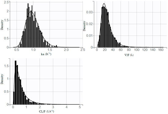 The distribution of parameters is also presented (Figure 4); a shrinkage value of 10.5%, 3.03%, and 11.5% was observed on ka, Vd/F, and Cl/F, respectively.