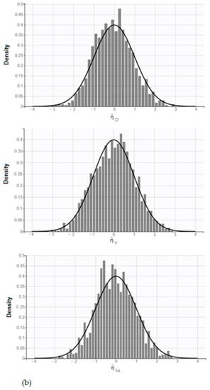 No correlation was observed between random effects. In addition, the distribution of random effects follows a normal law (Figure 5).