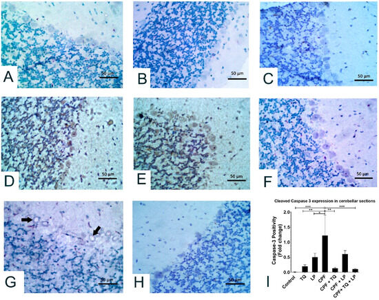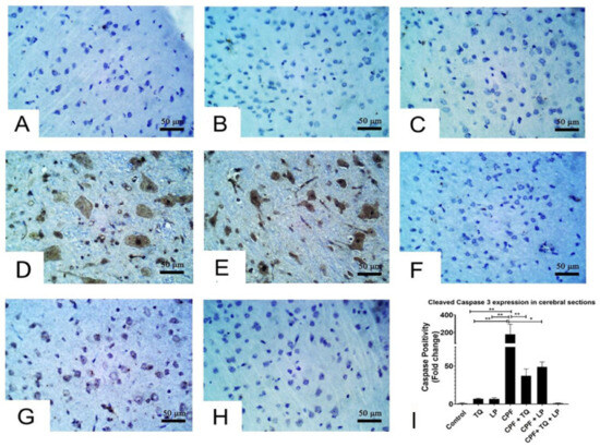 - El-Sayed, N.M.; Ahmed, A.A.M.; Selim, M.A.A. Cytotoxic effect of chlorpyrifos is associated with activation of Nrf-2/HO-1 system and inflammatory response in tongue of male Wistar rats. Environ. Sci. Pollut. Res. 2018, 25, 12072–12082. [Google Scholar] [CrossRef] [PubMed]