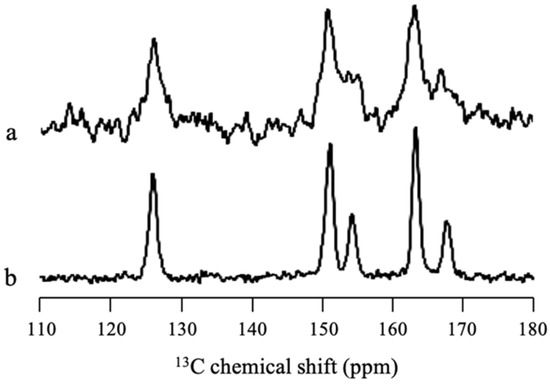 Solid-state 13C NMR was conducted by a JNM-ECX-400 NMR system (9.4 T; JEOL Resonance Inc., Tokyo, Japan) with a JEOL 4 mm HXMAS probe and the samples were measured using the CP/MAS of spinning sidebands experiments under the following conditions: spinning rate, 5 kHz; contact time, 2 ms; scans, 55,000; relaxation delay, 5 s.
