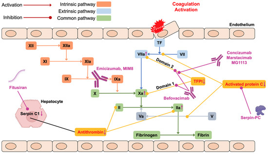 - Nogami, K.; Shima, M. New therapies using nonfactor products for patients with hemophilia and inhibitors. Blood 2019, 133, 399–406. [Google Scholar] [CrossRef]