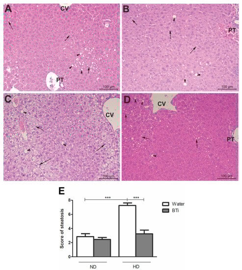 2.6. Effect of the BTi on Leukocyte Infiltration, Formation of Crown-like Structures by Macrophages around Adipocytes and Macrophage Cellular Functions