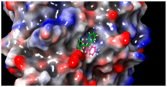 Protection of the amine group of compound (23), with bulky phthalimide groups (25, 26), did not demonstrate any additional interactions with external amino acids. In addition, this group was unfavorably exposed (Figures S12 and S13).