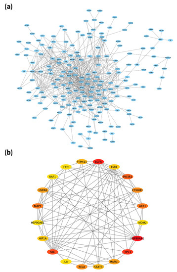 - Shannon, P.; Markiel, A.; Ozier, O.; Baliga, N.S.; Wang, J.T.; Ramage, D.; Amin, N.; Schwikowski, B.; Ideker, T. Cytoscape: A software environment for integrated models of biomolecular interaction networks. Genome Res. 2003, 13, 2498–2504. [Google Scholar] [CrossRef]