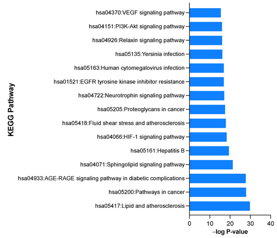 A database for Annotation, Visualization and Integrated Discovery (David database, https://david.ncifcrf.gov/tools.jsp, accessed on 3 July 2022) [95] was employed to perform GO analysis and KEGG pathway enrichment. A p-value < 0.05 was used as a cutoff and was corrected using a false discovery rate (FDR) error control technique.