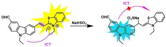 - Wang, G.; Qi, H.; Yang, X. A Ratiometric Fluorescent Probe for Bisulphite Anion, Employing Intramolecular Charge Transfer. Luminescence 2013, 28, 97–101. [Google Scholar] [CrossRef]