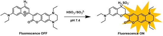 - Xu, J.; Zheng, D.J.; Su, M.M.; Chen, Y.C.; Jiao, Q.C.; Yang, Y.S.; Zhu, H.L. A Rapid Cell-Permeating Turn-On Probe for Sensitive and Selective Detection of Sulfite in Living Cells. Org. Biomol. Chem. 2018, 16, 8318–8324. [Google Scholar] [CrossRef] [PubMed]