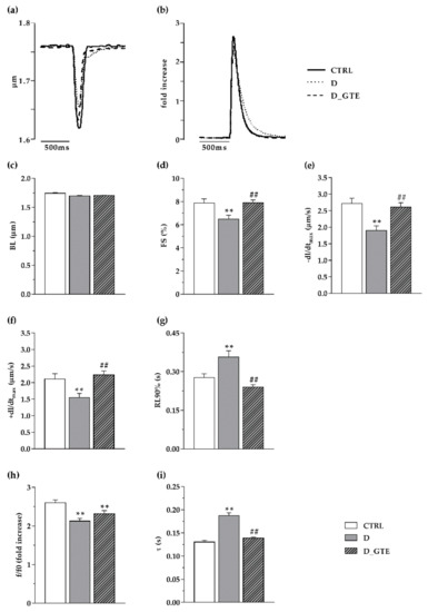 2.3. Cardiomyocyte Contractility and Calcium Transients