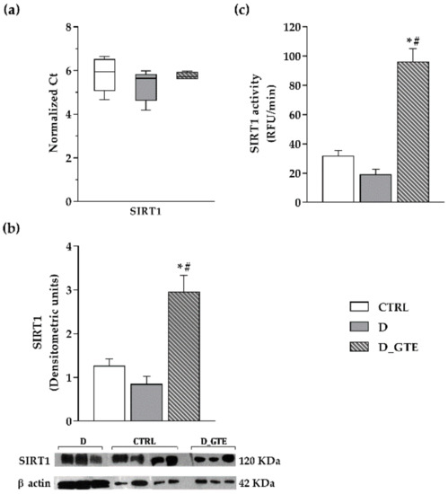 3.7. SIRT1 Activity, Protein and mRNA Levels