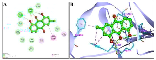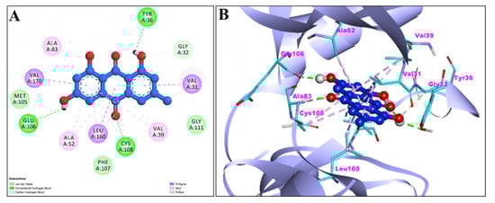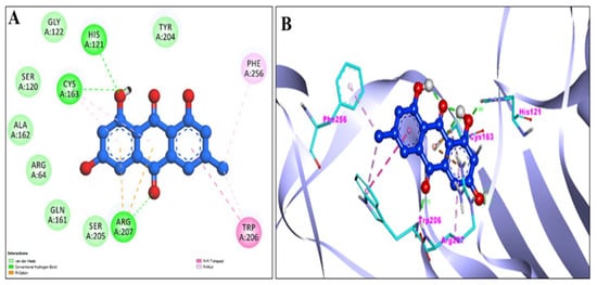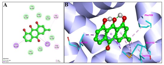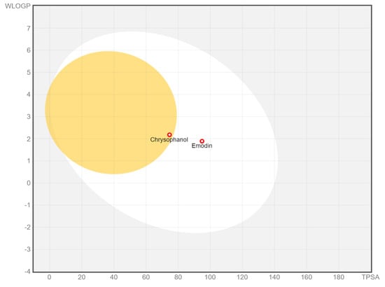 | Chrysophanol | High | Yes | No | Yes | No | No | No | Yes | −5.34 |