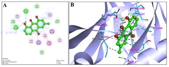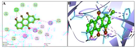 | Apoptosis regulator Bcl-2 (PDB:4MAN) | −6.55 | NA | NA | 15.69 uM | ALA146,PHE150,GLU149,VAL153,PHE109,PHE101,TYR105,ASP108,VAL130,GLU133 | ALKYL/PI-ALKYL = LEU134 Pi-sigma = MET112 |