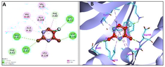 | Cyclin-dependent protein kinase-2 (PDB: 6GUE) | −7.71 | A:LEU83:HN-:UNK1:O10 | 2.73142 | 2.22 uM | GLN85,HIS84,ASP86,PHE82,GLU81,ASP145,VAL18 | ALKYL/PI-ALKYL = ALA31,VAL64,ALA144 PI-SIGMA = ILE10,LEU134,PHE80 |