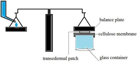 The adhesion strength of a patch has been evaluated using various in vitro techniques. To determine the lowest adhesion force formed between the patch and the mucosa, almost all of these approaches assessed the force required to detach a patch from a smooth surface. First, a 1*2 cm2 piece of cellulose membrane was glued to the back of a glass container and hydrated with distilled water, as shown in Figure 12. After that, one of the prepared patches attached to the balance behind the plate was pressed against the surface of the cellulose membrane for one minute. The water was then poured into another plate of balance drop by drop at a rate of 3 mL/min. To calculate the adhesion strength, the time the patch was removed from the surface of the cellulose membrane was recorded. This experiment was repeated three times, with the average result reported.