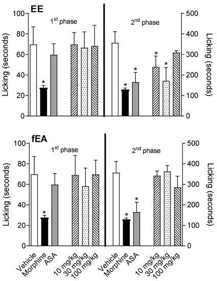 4.5. Formalin-Induced Licking Behavior
