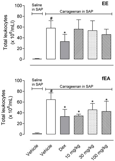 2.3. T. granulosa fEA Reduced Leukocytes Migration into Subcutaneous Air Pouch (SAP)