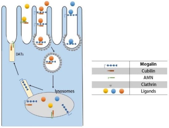 - Christensen, E.I.; Birn, H. Megalin and cubilin: Multifunctional endocytic receptors. Nat. Rev. Mol. Cell Biol. 2002, 3, 256–266. [Google Scholar] [PubMed]