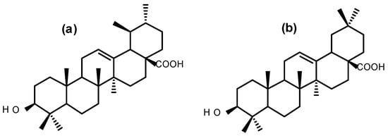 Chemical structures of (a) ursolic acid and (b) oleanolic acid.