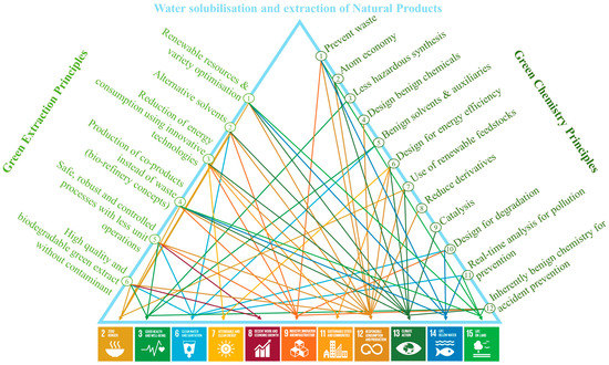 This review introduces the basic principle of thirteen methods to enhance the solvent power of water in the green extraction of NPs. These methods are then analysed, compared and evaluated, with a score reflecting their green extraction global efficiency. Moreover, the future of water-based green extraction is expected to consist of relevant combinations of these methods to achieve higher extraction yields and greater extraction profiles. The interest of some of these combined methods will be discussed. Finally, the potential impact of these methods as a prospect is assessed through the prism of green extraction and the principles of green chemistry, then linked to the corresponding Sustainable Development Goals (SDGs) as defined by the United Nations.