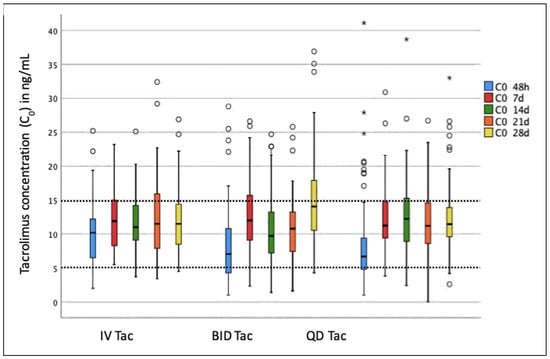 - Schumacher, L.; Leino, A.D.; Park, J.M. Tacrolimus intrapatient variability in solid organ transplantation: A multiorgan perspective. Pharmacother. J. Hum. Pharmacol. Drug Ther. 2020, 41, 103–118. [Google Scholar] [CrossRef] [PubMed]