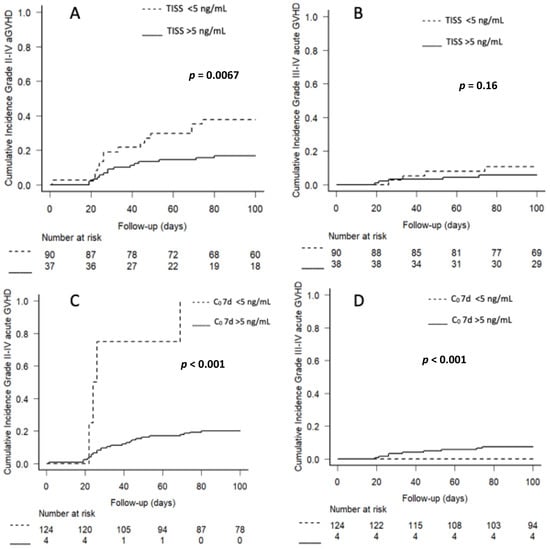 2.3. Impact of Tacrolimus IPV, TISS, and C0 on Acute GVHD