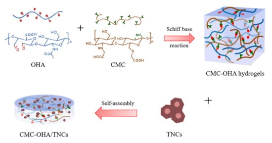 2.3. Preparation and Characterization of CMC-OHA/TNCs
