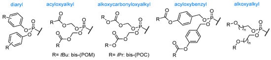 - Freeman, S.; Ross, K.C. 3 Prodrug Design for Phosphates and Phosphonates. In Progress in Medicinal Chemistry; Ellis, G.P., Luscombe, D.K., Eds.; Elsevier: Amsterdam, The Netherlands, 1997; Volume 34, pp. 111–147. [Google Scholar]