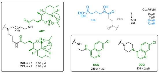 - Verbrugghen, T.; Cos, P.; Maes, L.; Van Calenbergh, S. Synthesis and Evaluation of α-Halogenated Analogues of 3-(Acetylhydroxyamino)propylphosphonic Acid (FR900098) as Antimalarials. J. Med. Chem. 2010, 53, 5342–5346. [Google Scholar] [CrossRef] [PubMed][Green Version]