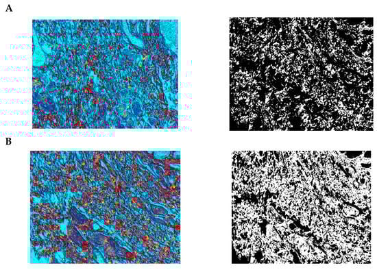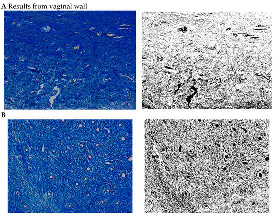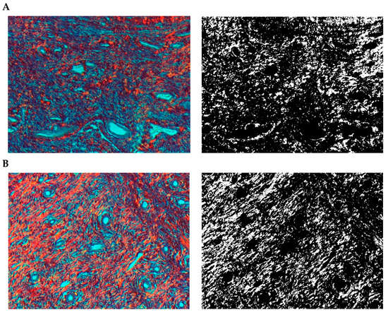 Segmentation before (A) and after (B) treatment (picrosirius red staining).
