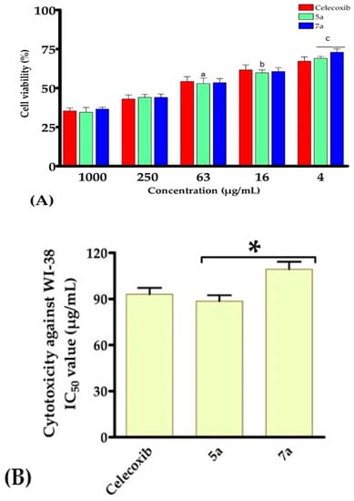 2.3. Assessment of In Vitro Cytotoxicity Activity against WI-38 Cells