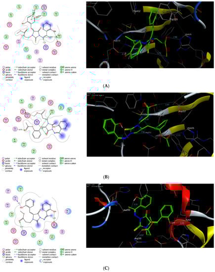 | Protein (PDB Code) | Compound | S (kcal/mol) | Hydrophilic Interactions | Distance (A) | Hydrophobic Interactions |