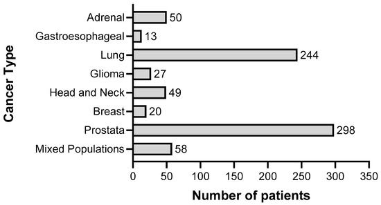 Representation of the total number of patients (n = 759) in relation to cancer type, who were treated with gossypol/AT-101 within clinical trials summarized in this systematic review.
