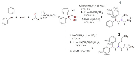 Schematic view of the phosphine (1, 2) and synthetic routes.