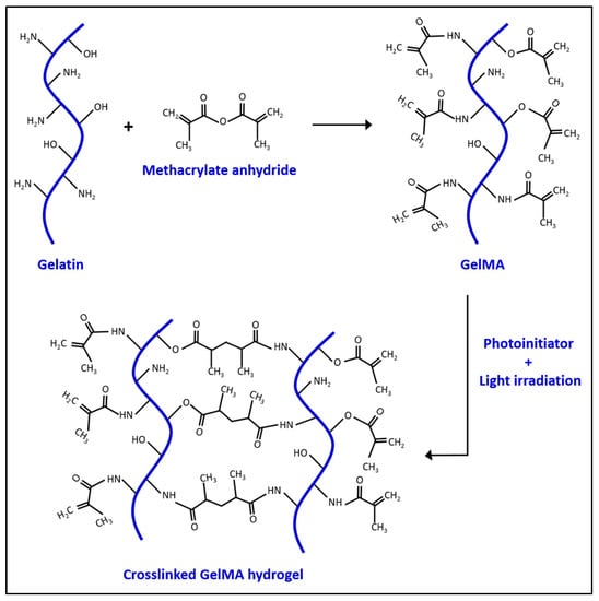 - Yue, K.; Trujillo-de Santiago, G.; Alvarez, M.M.; Tamayol, A.; Annabi, N.; Khademhosseini, A. Synthesis, properties, and biomedical applications of gelatin methacryloyl (GelMA) hydrogels. Biomaterials 2015, 73, 254–271. [Google Scholar] [CrossRef] [Green Version]