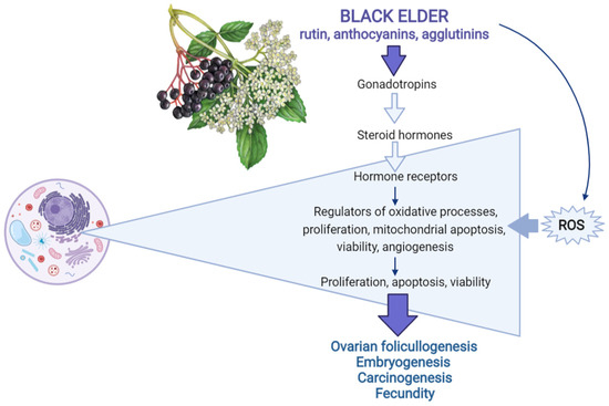 Although numerous signaling pathways are involved in elderberry action on non-reproductive processes, research enabled the identification of only some pathways mediating the effect of black elderberry on reproduction, and less studies have been performed to detect mediators of this plant’s action on female reproductive processes.