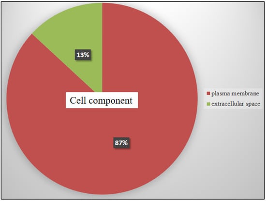 DAVID software analyzed the possible active locations of the significantly affected genes in the cellular components of TQ-treated HL60 cells. The majority of genes were activated in the plasma membrane, which suggests that TQ affects signaling activation in the plasma membrane. The area of each category represents the percentages of involved genes to each other (p < 0.05).