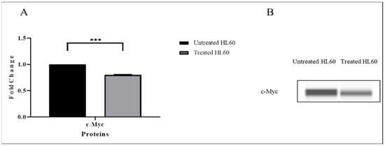 As shown in Figure 10, the effect of TQ on c-Myc protein expression in HL-60 cells was also examined, and the results showed a marked decrease in c-Myc protein after TQ treatment (*** p < 0.001).