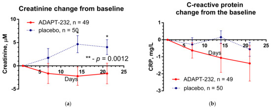 - Inflammatory marker: creatinine in serum, μM. Time frame: change from baseline during the treatment period and follow-up (from Day 1 to Day 14 and Day 21 after randomization).