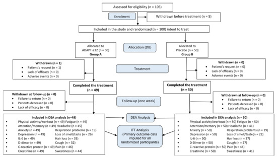 Efficacy of Adaptogens in Patients with Long COVID-19: A Randomized, Quadruple-Blind, Placebo-Controlled Trial