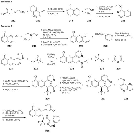 Romanelli et al. [] patented, in 2014, the synthesis of Voxtalisib following the synthetic pathway described in Scheme 13.