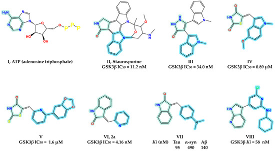 - De Simone, A.; Tumiatti, V.; Andrisano, V.; Milelli, A. Glycogen Synthase Kinase 3β: A New Gold Rush in Anti-Alzheimer’s Disease Multitarget Drug Discovery? J. Med. Chem. 2021, 64, 26–41. [Google Scholar] [CrossRef] [PubMed]