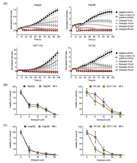 2.1. Anti-Proliferative Effects of Gossypol on Human Hepatoma and Colon Carcinoma Cell Lines