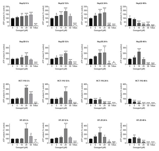 2.4. Gossypol-Related ATP Depletion in Human Hepatoma and Colon Cancer Cell Lines